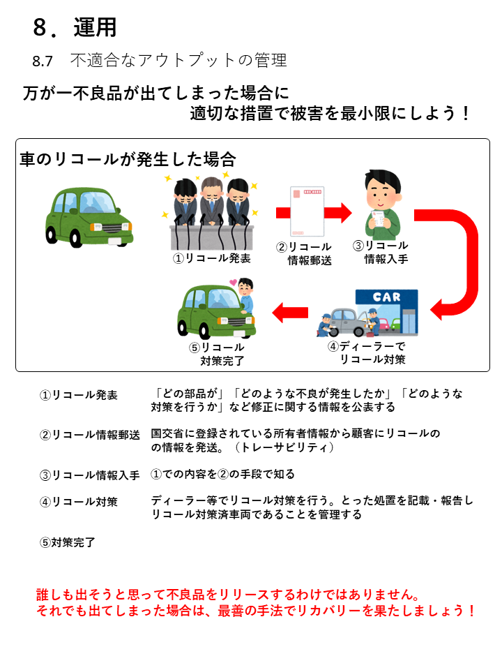 8.7 不適合のプロセスアウトプット、製品・サービスの管理